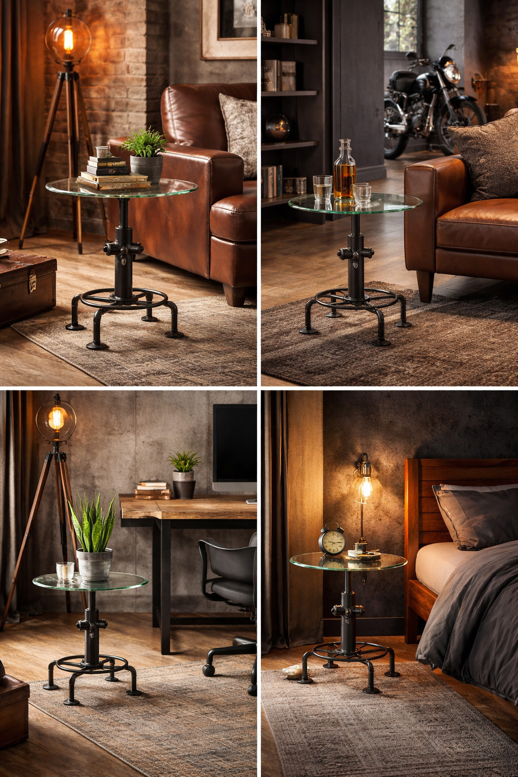DESIGN 1251 Tempered Glass Industrial Style Side Table Ø560 X H565MM Clear glass, Metal leg finished with antique black